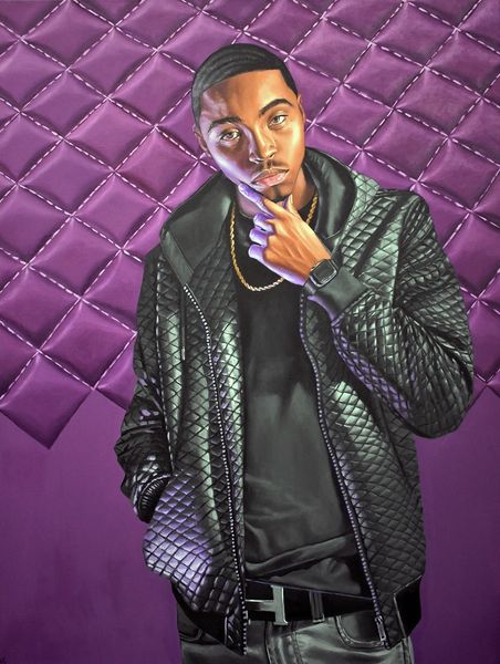Valentina Remenar, a 20th-century artist, created this image, titled "Sixoutfits." The composition immediately strikes you with its stark contrast between the figure and the flat yellow background. The figure, rendered with sharp, clean lines, has a stylized realism. There is a tension between the modern digital style and the subject, who seems styled from a pre-digital era, which offers a rich area for structural exploration. How does Remenar use the visual language of contemporary digital art to engage with themes of identity and fashion, and how are they perceived? The figure's gaze, directed slightly off to the side, invites the viewer into a space of contemplation. The clothing – the trench coat, jewellery, and rings – hints at a constructed identity, raising questions about the semiotics of fashion. The artist's sharp focus on the details of the outfit transforms the image into a study of visual signs. The piece functions as more than just a portrait, but a complex interplay of signs and meanings.