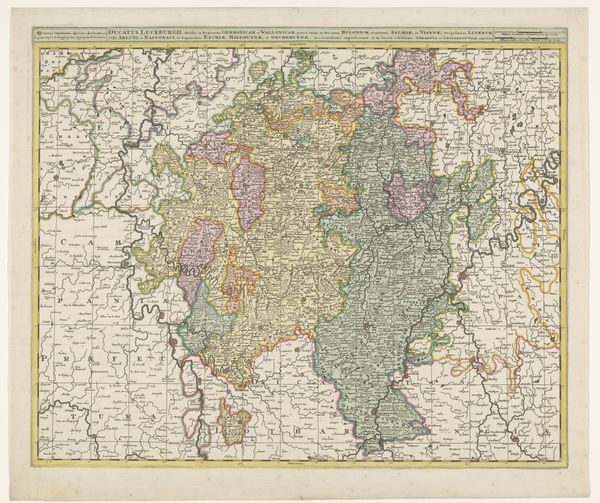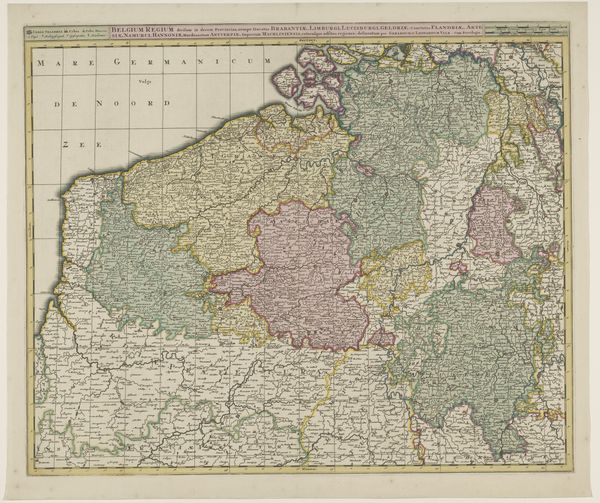 This is a map of Germany, made by an anonymous artist. The first impression is of a patchwork, with various states rendered in distinct colors. It’s not just a visual aid but a statement about the fragmented nature of the German territories at the time. Note how color is used not only for distinction but also to create visual groupings, suggesting alliances or cultural affinities. The lines defining borders are sharp and decisive. Yet, the washes of color bleed slightly, indicating the fluid, permeable nature of political boundaries. Semiotically, these colors and lines function as signs, encoding a complex web of political and cultural meanings. The map challenges the notion of a unified "Germany," highlighting the many divisions within it. By presenting Germany as a collection of separate entities, the map destabilizes the idea of a singular national identity. The tension between the sharp lines and bleeding colors embodies the struggle between defined structures and fluid realities. The map encourages us to see beyond the surface and question the very idea of fixed identity and borders.