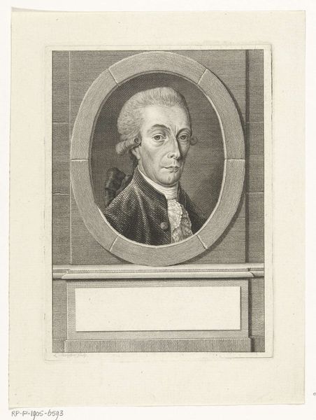 Jacob Ernst Marcus created this portrait of Gerrit Hesselink with etching, a process that allows for the precise and repeatable transfer of images, a democratizing force in disseminating likeness. Consider the oval frame. A motif dating back to antiquity, it reappears throughout history, from Roman cameos to Renaissance portraiture. The oval shape, suggesting an egg or seed, evokes ideas of potential and containment. It represents the sitter in a moment, carefully curated and preserved. The gaze of the sitter is an active appeal. It elicits from us an immediate response, a connection that transcends time. This echoes the ancient Roman tradition of portraiture, where the 'imago' or mask of the deceased was meant to keep the memory alive, to make the dead present among the living. Thus, the image becomes more than a mere depiction, but a vessel of memory that, across time, invites us into a dialogue with the past.