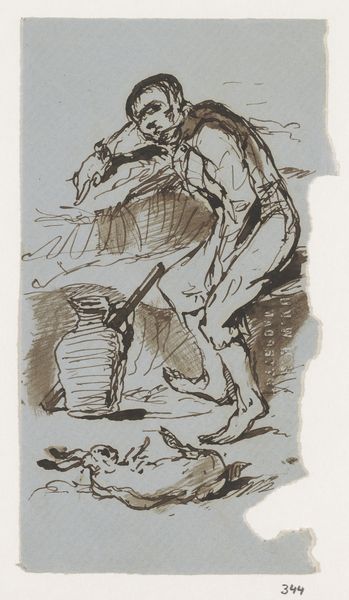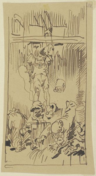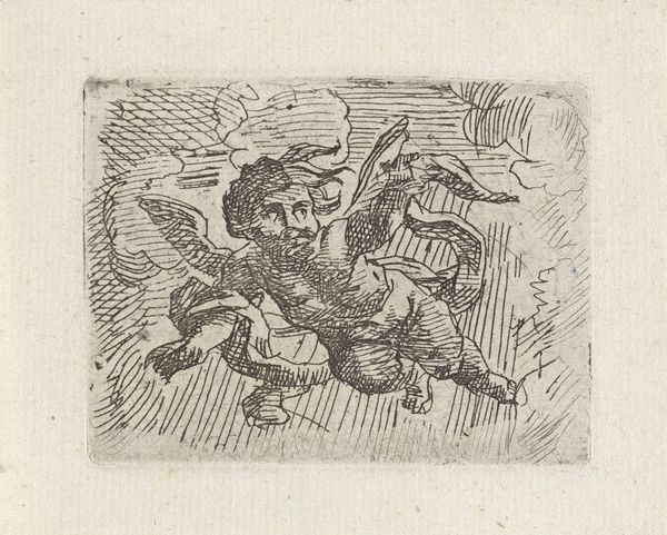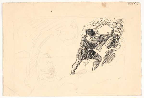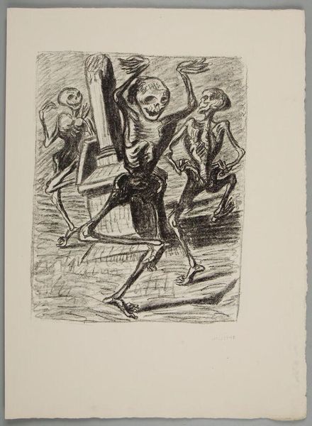 Curator: Ernst Barlach's raw graphite drawing, titled "The Assault," likely dating to around 1915, really hits you, doesn’t it? Editor: Yes, immediately! It's like a shard of something broken. The chaotic lines make me think of mud, or trenches. There's a frenzied energy, but it feels hopeless, too. Curator: Barlach’s Expressionist style always conveys so much emotion. The subject is very explicit: we are face to face with two soldiers mid-charge, bayonets ready. But observe the direction in the image. Do you perceive a linear depiction or some alternative point of view? Editor: Right, well, everything is geared toward conveying the sheer horror, of course. Notice how the scratchy, agitated marks become the driving force. He uses those quick marks to construct the illusion of forms, but they also stand apart to give you that real and raw sensation. Like the feeling of being in that awful, traumatic circumstance and moment. Curator: There's a claustrophobic, almost stage-like quality to it, with the "curtain" of frantic strokes framing them. Their faces are contorted masks. But this drawing makes me think about how war gets depicted, who does the depicting, and for what purpose. Editor: The way he lays down those strokes speaks of urgency but also constraint. A cheap pencil, perhaps? Was this quickly sketched at the front, or from recollection? How was such material distributed? Curator: I think he really captures how industrialized slaughter robs people of their humanity, doesn’t it? These men are not heroic, or triumphant. Instead, the terror seems to permeate them, doesn’t it? You are spot on when discussing material, he used economical gestures to maximize emotional impact through basic means. The emotional intensity is just so impressive. Editor: Absolutely. There's a lesson here for contemporary artists even. See what he did with a basic tool. Imagine today's options - projections, multimedia - that raw material experience just gets further displaced! Curator: It’s a somber reminder. Editor: Definitely food for thought. Thanks for sharing.