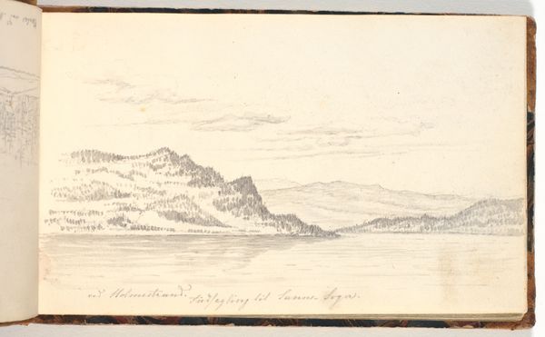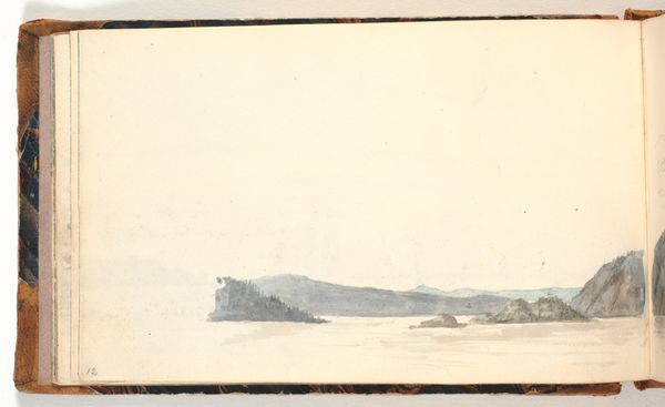 This fjord landscape with wooded islets was rendered by Martinus Rørbye using delicate strokes of watercolor. Notice the composition: the artist divides the scene horizontally, balancing the solidity of the land with the openness of the sky above and water below. Rørbye uses color to subtly model form and depth, particularly on the hillside to the left. This approach suggests a concern with capturing the perceptual experience, a hallmark of early 19th-century Romanticism. However, Rørbye stops short of illusionism; the sketch retains a graphic quality. The emphasis here isn't on naturalistic representation but on the interplay between surface and depth. The materiality of the watercolor itself, with its translucent washes and visible paper grain, reminds us that we are looking at a constructed image, not a mirror of nature. This is a subtle deconstruction of landscape painting, inviting us to contemplate the act of seeing and representing.