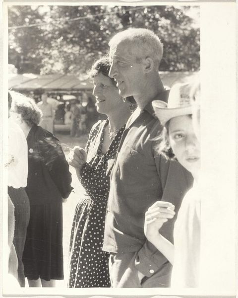 Robert Frank made this photograph, "Man with I.D. button--San Francisco," with film, chemicals, and light. Frank had a way of capturing the grit of everyday life, and his process feels like a dance between intention and accident. Look at the way the light catches the man's face, the sharp details contrasting with the blurry figure behind him, and that I.D. button—it's almost a character in itself, isn't it? The texture of the print, the graininess, is so palpable. It's not slick, it's real. It feels like a snapshot of a moment, unposed and raw. Think about the way Frank crops the figures; it's like he's grabbing a slice of life as it passes by. Frank, like Lisette Model, understood that art isn't about perfection, it's about honesty. It's about capturing the messy, beautiful, and sometimes unsettling moments that make up our world. It's a reminder that art thrives on ambiguity and the invitation to see things in new ways.