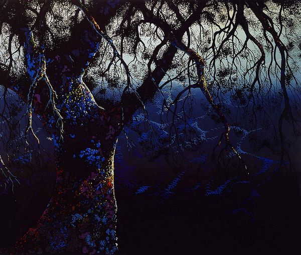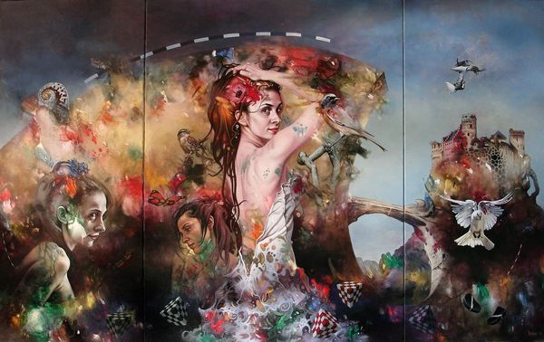 Valentina Remenar's 'Elven Prince' captivates with its intricate detail and ethereal quality. The subject, rendered in delicate shades of silver, grey and orange, exudes a serene yet melancholic aura. The composition is dominated by flowing lines and ornate patterns. Note the elaborate headpiece and shoulder adornments, their swirling motifs echoed in the prince's cascading hair and the surrounding foliage. This repetition creates a sense of unity, drawing the eye through the image's layered depths. The limited colour palette reinforces the artwork's dreamlike atmosphere, with subtle gradations of light and shadow lending a sense of depth and volume. Consider how Remenar employs these formal elements to construct meaning. The prince's downcast gaze and pallid complexion evoke themes of introspection and vulnerability, while the naturalistic details suggest a connection to the environment. Ultimately, 'Elven Prince' invites us to contemplate the interplay between inner emotion and external appearance.