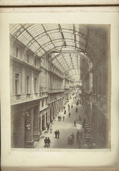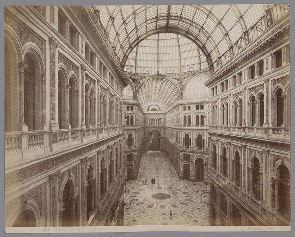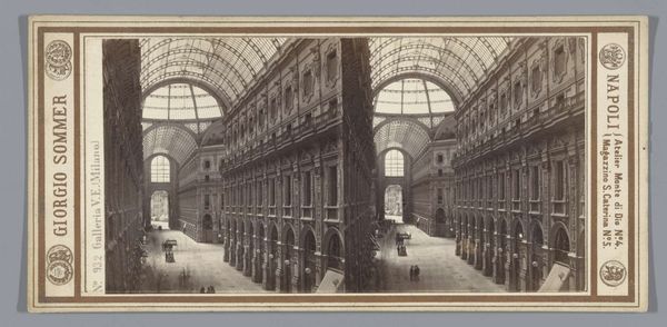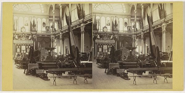 This stereoscopic photograph captures a bird's-eye view of the Nationale Nijverheid exhibition inside the Paleis voor Volksvlijt in Amsterdam. Flags hang around the inside of the building; a symbol of national pride and unity, these banners resonate with ancient heraldic traditions. Such emblems are not merely decorative; they are charged with a collective memory, invoking an emotional response that binds the individual to the state. Think of the Roman standards, the medieval heraldry, and even the modern-day flags that evoke strong sentiments of belonging and identity. The flags are also reminiscent of religious banners displayed during processions, carrying a deeper, subconscious association with devotion. Here, in the temple of industry, this motif has resurfaced, subtly shifting from religious reverence to national enthusiasm, a cycle of symbols and meaning ever in flux.