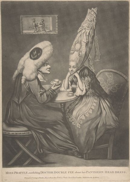 Curator: What strikes me most about Sir Max Beerbohm's "Woolner at Farringford, 1857" is the quiet tension; a room pregnant with unspoken sentiments. Editor: It's the textures, isn't it? The chalky paper, the gentle layering of color. It looks like the image was almost breathed onto the support. Curator: Beerbohm evokes a specific moment in the Victorian era. Look at Woolner, the sculptor, posed as a defiant figure, a stark contrast to Tennyson's composed posture. It speaks to the artistic ego and the cultural weight of the poet laureate. Editor: And that material reality contrasts with the almost ethereal quality of the drawing itself. The process softens what could be a very rigid power dynamic. Curator: I agree. The soft execution emphasizes the undercurrents, the psychological dance between artist and subject. Editor: Ultimately, the piece invites us to consider how the artist’s hand shapes the narrative, softening the edges of ego and ambition with delicate materiality.