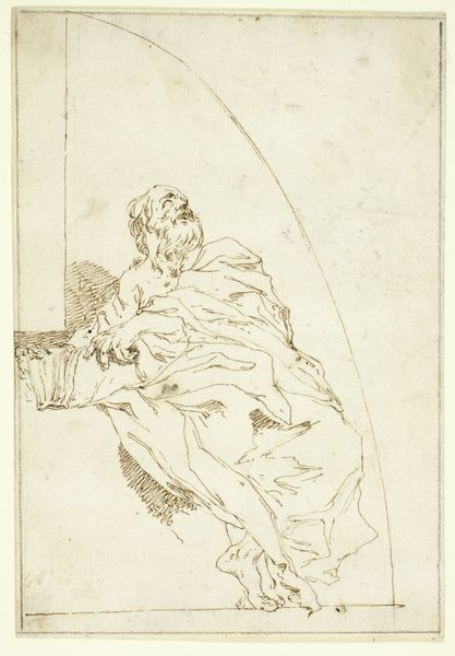 This pen and brown ink drawing presents a design for a hand mirror or fan handle. Look closely, and you'll notice how the composition is dominated by curvilinear forms, swirling from the base to the rounded top. The artist masterfully uses line to suggest depth and texture. The structure itself is a study in contrasts. The solid, densely worked areas at the top and bottom anchor the more ethereal, lightly sketched central portion. This creates a visual tension, as if the object is both grounded and on the verge of dissolving into the surrounding space. Consider how this dynamic interplay challenges the very idea of a fixed, stable form. The drawing destabilizes established categories of solidity and transparency, inviting us to see the object not as a static entity, but as a fluid, ever-changing presence. The formal qualities here function aesthetically and encourage an ongoing interpretation of representation.