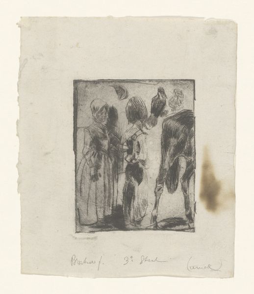 Curator: This ink drawing from 1906 by C.J. Rovers depicts a vase brimming with blooms. It’s titled, quite simply, *Vaas met bloemen*. Editor: It has a fragile, fleeting quality. The composition seems carefully considered but the marks themselves feel light, almost like a memory of flowers rather than a perfect, botanical representation. Curator: The realism is undeniable. Floral still lifes were fashionable, especially with an increasingly urban population that was quickly becoming disconnected from their roots. But it moves beyond pure mimesis, wouldn't you agree? Editor: Absolutely. The curtain in the background feels especially poignant. There's a tension between concealing and revealing—the blooms both flourish and fade behind that sheer layer. The flowers as a memento mori symbol of our impending mortality feels fitting here. Curator: Yes, and think of the symbolism embedded within floral arrangements! Certain flowers represented love, loss, hope, and the transience of beauty. Considering this was produced in 1906, what meanings might these flowers, chosen and rendered as they are, communicate to its contemporary audience? Editor: That’s where it gets tricky! The specific flowers themselves appear somewhat obscured due to the inking. It becomes less about the codified meanings of specific blooms and more about the general sense of impermanence that flowers, as a subject, bring to the foreground of our conscious understanding. Curator: Yet, doesn't the deliberate staging invite a deeper inquiry into social attitudes towards mortality at the time? What was the dominant conversation regarding grief and remembrance in this early 20th-century Dutch cultural moment? Editor: Without delving further into the history surrounding Rovers' career as a visual artist, one risks ascribing subjective values, don’t you agree? Still life pieces often reflect a growing leisure class. An embrace of natural imagery within the domestic setting becomes very desirable to members of said population. This in itself constitutes part of a larger, overarching conversation of sociopolitical structures, don’t you agree? Curator: I concede your point, there's an ever-present pull to contextualize artistic output within its relevant sociopolitical ecosystem! What remains is the lasting emotive capability embedded within its skillful deployment of recognizable symbols. Editor: Indeed. Its restrained composition and deft execution serve as an intimate glimpse into a moment suspended, quietly beckoning continued consideration.