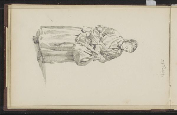 This is a pencil drawing titled ‘Girl with a Sledge with Branches on the Ice’ by Willem Cornelis Rip. The work's composition is immediately striking for its simplicity. A young girl rendered in delicate strokes is pulling a sledge piled high with branches across what we can only assume to be a frozen surface. Rip uses line and shading to create a sense of form and depth. The texture of the girl's clothing, the rough-hewn sledge, and the tangled branches are all suggested through subtle variations in pressure and density of the pencil marks. The drawing emphasizes the materiality of the scene, inviting us to consider the nature of representation itself. Rip's focus is not on capturing a precise likeness, but rather on exploring the interplay of light and shadow, form and void. There is a quiet stillness to the drawing, a sense of contemplative observation that invites us to pause and reflect on the beauty of the everyday.
