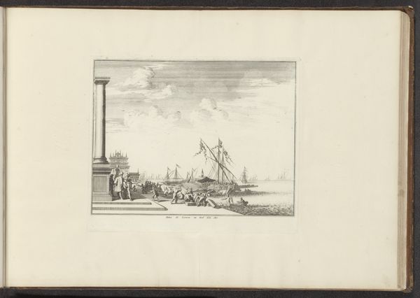 This is an engraving of the Palazzo del Nunzio Ponteficio in Venice, made by an anonymous artist. The palazzo, with its classical columns, stands proudly along the bustling waterfront, a hub of maritime activity. The image offers a glimpse into Venice, likely during the 17th or 18th century, a time when it was a major maritime power. The presence of the Papal Nuncio's palace underscores the city's significance as a diplomatic and religious center. The detailed depiction of ships, people, and architecture speaks to Venice's economic vitality and cosmopolitan character. What stories do these figures carry with them? What goods are being traded in the ships? To understand this artwork, a social historian might explore Venice's political structure, its relationship with the Catholic Church, and its role in international trade. Researching archival documents, maps, and period accounts could reveal deeper insights into the lives of the people depicted and the broader social context in which this image was created.