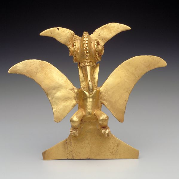 This is an Akan goldweight in the shape of a bird, made of an alloy of copper, zinc, and gold. For the Akan people, these weights were not mere instruments of commerce, but vessels laden with cultural meaning. The goldweight takes the form of a Sankofa bird, which appears frequently in Akan art. The symbol represents the importance of learning from the past. It expresses the idea that wisdom comes from reflecting on history. "Se wo were fi na wosankofa a yenkyi," which translates as, "It is not wrong to go back for that which you have forgotten." The Akan people used these weights in daily transactions, linking economic activity to broader cultural values, encouraging reflection on heritage, and the integration of past wisdom into present dealings.