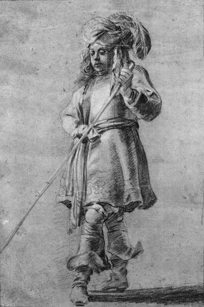 This drawing of a standing cavalier, now in the collection of the Statens Museum for Kunst, was made by Karel van Mander III in the 17th century. Executed in pen and brown ink, it’s a study in contrasts – literally – between light and shadow. Look closely, and you’ll see how the artist builds up the figure with rapid, confident strokes. These aren’t the sort of academic techniques you’d associate with a finished painting. Instead, it feels like a fleeting impression, almost dashed off, with the pen hardly leaving the paper. The material has its own active qualities; the ink bleeds slightly into the paper, creating texture. Consider the social context of this image too. This drawing may have been created in the service of a larger painting, but it also stands alone as evidence of the artist’s skill. It reminds us that artistic creation is always a labor, a performance of virtuosity. By appreciating the materials and processes that went into its making, we can better understand its cultural significance.