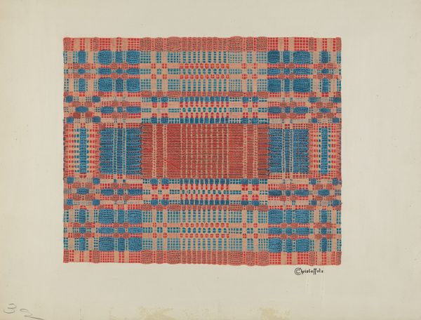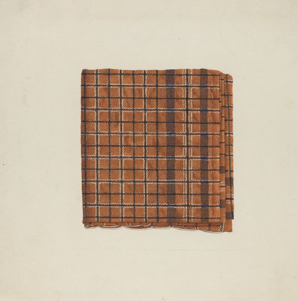 This textile print, by Ralph M. Lewis, feels like a study in how simple lines and colors can create complex patterns. The process here seems straightforward: vertical stripes meet horizontal ones, but the effect is anything but simple. I'm drawn to the earthy palette—browns, greens, and creams—it’s as though Lewis found his colors in nature, and I love how these colors interact. Take, for example, the way the green stripes stand out against the checked pattern, disrupting the regularity and adding a touch of unexpected energy. You can almost feel the back and forth as he built this. This reminds me a bit of the work of Anni Albers, another artist who explored the intersection of weaving and art. Like Albers, Lewis shows us that textiles aren’t just about utility. They’re about seeing, thinking, and feeling in new ways. It’s a reminder that art is everywhere, even in the patterns we wear.