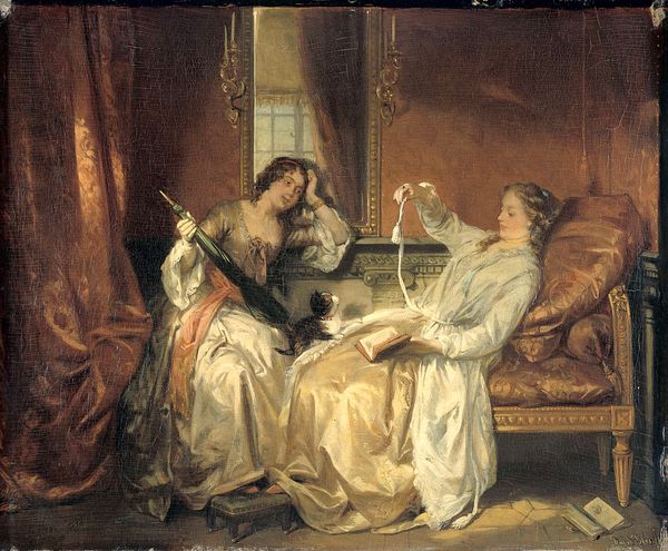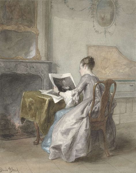 David Bles created this watercolor called "Two Young Women at a Table". Although undated, it was likely made in the mid-19th century in the Netherlands. Through its detailed depiction of domestic life, this painting offers a glimpse into the cultural values and social expectations of the time. The contrast in the women's activities is striking. One woman is deeply engrossed in her reading, while the other seems uninterested and is playing with a toy. This contrast may be a subtle commentary on the roles available to women in 19th century Dutch society. Were women expected to focus on domestic skills and social graces, or were they allowed to pursue intellectual interests? The setting, the clothing, and the activities all suggest that the painting depicts a world of relative privilege and leisure. To understand this work more fully, we can turn to archival sources, such as letters, diaries, and other documents, to shed light on the social and cultural context in which it was created.