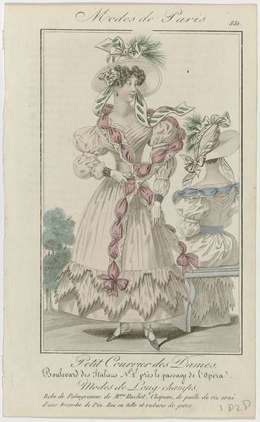 This is a fashion plate from the Petit Courrier des Dames, printed in Paris in 1825. These prints reflected the fashion trends of the time but also reveal the social and economic structures that shaped them. Fashion plates like this served as a form of visual communication, conveying the latest styles to an elite, fashion-conscious audience. The print provides detailed information about the dress, hat and accessories. Note the dress fabric, a wool tartan. Tartan was historically associated with Scotland, but in the 1820s it became a popular fashion statement across Europe. This indicates a cultural exchange and appropriation, as Scottish cultural symbols were integrated into mainstream European fashion. Fashion prints played a role in shaping consumer culture. They encouraged the purchase of new garments and accessories, driving the growth of the fashion industry. Studying these prints, alongside other historical sources, helps us understand the relationship between fashion, identity, and consumerism in 19th-century France.