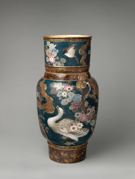 Editor: This is a ceramic vase with a cover, one of a pair, made around 1770 by the Worcester Royal Porcelain Company. The rococo style is quite striking, but there's also an intriguing formality to its shape. The colors and patterns seem a bit…loud. What historical contexts might illuminate our understanding of it? Curator: Indeed, its flamboyant Rococo design clashes somewhat with the formality of its intended setting. Consider the vase within the historical context of British colonialism and trade. These objects, adorned with fantastical birds and lush foliage, reflect a fascination with the ‘exotic’ East – but what is "exoticism" if not a power dynamic? These objects become symbolic trophies that tell us a lot about the collector's values. Does the vase suggest ideas about social standing to you? Editor: Absolutely! The expense of such intricate porcelain, I imagine, would restrict its ownership to a very specific social class, acting almost like a signifier of wealth and “good taste”. Curator: Precisely. Think about the craftsmanship involved, too. Someone’s labour was consumed to make that, and was subsequently being consumed as pure decor. Where did the materials originate? What were the conditions of the artisans that produced them, in Worcester, or elsewhere? Also, consider the transfer of imagery: do these birds actually represent their natural counterparts in Asia or the West? How do they function as symbols, loaded with political ideology? Editor: So, while it might appear purely decorative, it really encapsulates the societal and colonial narratives of the time. The production, the aesthetic, even the display—all connected to power and privilege. Curator: Exactly. And by asking these questions, we are really asking questions about art history as well. What we deem decorative or "fine art", is really revealing about the hierarchy of whose stories and skills get visibility, and why. Editor: It definitely provides a different lens to view these seemingly innocent artifacts, and makes you consider whose stories are being told – and whose are being omitted. Curator: Precisely, seeing beyond mere aesthetics, to recognize these cultural signifiers, is essential in activist art history.