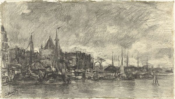 Willem Witsen made this drawing of the Oudeschans in Amsterdam, with what looks like graphite on paper. The marks are wonderfully provisional, like he’s thinking through the scene as he draws. I love the texture Witsen coaxes from the graphite; it's soft, almost smudged in places, creating this atmospheric haze. Look at how he renders the reflections in the water – just these quick, vertical strokes that suggest movement and light. The tower, sketched with a bit more precision, anchors the composition. See the radiating lines above it? Are they light, or rain, or some kind of ethereal energy emanating from the tower? It’s ambiguous, which I love. This drawing feels immediate, like a fleeting impression captured on paper. It reminds me a bit of James McNeill Whistler’s nocturnes, capturing a specific mood and moment in time. Like much great art, Witsen’s sketch embraces uncertainty, inviting us to fill in the blanks and make our own connections.