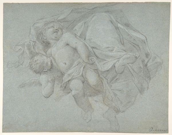 Guercino rendered 'Cleopatra bitten by the asp' using red chalk, a medium celebrated for its expressive qualities. The inherent nature of chalk lends itself to the softness of Guercino's lines, creating subtle gradations of tone that model Cleopatra’s form. The chalk allows the artist to achieve a delicate balance between detail and suggestion, crucial for capturing the vulnerability of the moment. The red hue infuses the scene with a palpable sense of warmth, suggestive of the queen's vitality even as she approaches her end. Historically, the accessibility of chalk meant it was often used for preparatory sketches or studies, allowing artists to explore compositions and refine their ideas. In this context, the drawing serves as a testament to the value of material and making in the broader art historical narrative, and challenges preconceived notions about artistic practices.