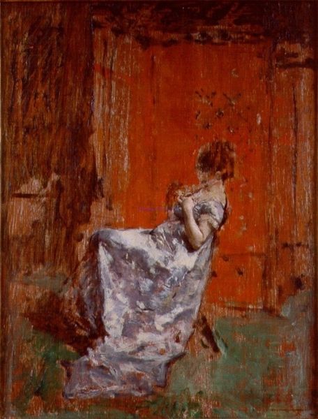William Merritt Chase created "Young Woman Before a Mirror" during a period when traditional gender roles were being questioned, and new possibilities for women were emerging. Here, the woman's gaze isn't directed outward, engaging with the viewer, but inward, towards her own reflection. This intimate moment suggests a shift from being seen to seeing oneself, as the woman adjusts her dress, her identity is both performed and contemplated. It makes you wonder, what does she see? And how does it make her feel? Chase captures a delicate balance; the woman is both an object of beauty, adorned in a fashionable dress, and a subject, actively engaged in shaping her own image. This duality reflects the complex negotiations women faced as they navigated societal expectations and personal desires. The painting leaves us to consider the quiet moments of self-reflection that define our understanding of who we are.