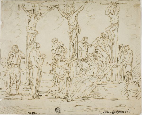 These are two composition sketches for the votive painting of Doge Pasquale Cicogna, created in pen and brown ink by Jacopo Palma, known as Il Giovane, in Venice. Palma was a central figure in the artistic life of Venice, deeply embedded in its complex social hierarchy and the politics of the Republic. These sketches give us insight into the visual strategies used to negotiate power and identity in the Renaissance. Doge Cicogna ruled during a period marked by both prosperity and anxieties about Venetian power. Votive paintings were commissioned to offer thanks for divine protection and to publicly display the Doge’s piety and authority. Consider the visual language of these sketches: the Doge is depicted in a position subservient to the divine. Palma uses the visual traditions to explore the tensions between earthly power and divine mandate. The sketch invites us to contemplate the emotional weight of leadership, the ever-present awareness of mortality, and the reliance on faith in times of uncertainty.