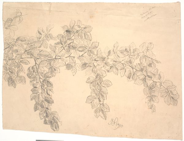 Curator: Look closely at "Studier af grene" (Studies of Branches) from 1825-26, created by Martinus Rørbye. It's rendered in pencil and pen on paper, a subtle yet detailed work residing here at the SMK. Editor: There's such a delicacy to it. It feels so transient, like a whisper of nature caught on the page before it vanishes. The sparse detail creates an almost ethereal quality, doesn't it? Curator: Absolutely. This drawing provides an insight into Rørbye’s artistic process during a period heavily influenced by the Romantic movement and emerging Realism. His study transcends mere representation; it encapsulates a specific time in the cultural view of landscape, aligning closely with an emerging scientific precision and also a sense of wonder. The branches become an exercise in close observation—not just of form, but of the experience of nature itself. Editor: Do you think Rørbye’s intention was scientific documentation, or an expressive exploration of form? There is such beauty captured through simplicity; the texture implied from minimal lines is evocative. It begs the question, what drives someone to see beauty in such a rudimentary way? Curator: Rørbye occupied this interesting nexus where precise documentation fed directly into artistic feeling. Remember the Romantic period deeply valued emotional connection with nature, but that feeling was increasingly mediated by an impulse toward realistic representation. Therefore, it is safe to assume his artistic expressions served many purposes which intertwined with a collective understanding of art's utility and emotive force within society at that time. Editor: It's lovely how this sketch still communicates something beyond observation, like the very scent of earth or feel of sunlight filtering through the leaves. The act of drawing, in itself, transforms observation into an experience, right? Curator: Exactly. By isolating these studies of branches, Rørbye prompts us to reflect not just on the details, but also on our engagement with art, nature, and what constitutes an individual's relationship to the two at once. Editor: Thinking about the artist’s meticulous process really makes me appreciate it even more. Curator: And isn’t that what art, and museums, are for?