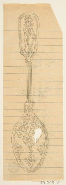 Here, on this sheet we see a design for silverware: a spoon, knife, and fork, rendered anonymously in ink on paper. The composition arranges these everyday objects in a vertical row, each piece meticulously detailed with ornate patterns. The spoon on the left, the knife in the center, and the fork to the right. Notice the delicate balance between functionality and artistry; the artist explores how even the most mundane items can be elevated through design. Each utensil is embellished with motifs that seem to draw from both natural and geometric forms. What does it mean to think about these instruments in terms of art, design, and the cultural codes that they might represent? How does this design challenge our preconceived notions about the separation between art and everyday life? Consider how this design uses scale to command our attention. It forces us to reconsider the potential for beauty in the functional. It encourages us to reflect on our own acts of interpretation and re-interpretation, even with objects we think we know so well.
