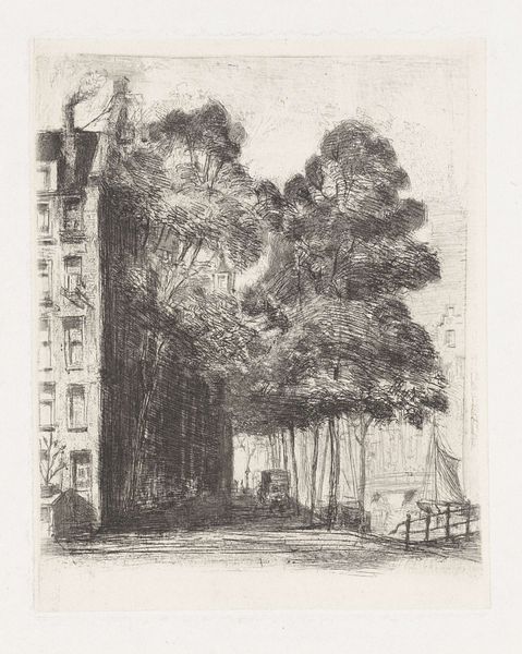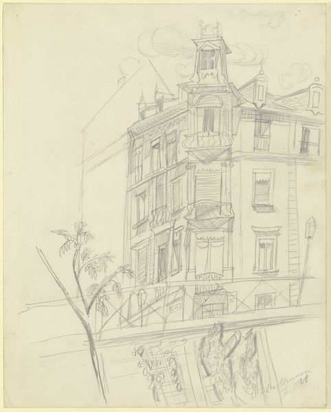 Curator: John Marin created this pencil drawing, "City Hall Park, Figures, Municipal Building in Construction," around 1912. Editor: It feels like a hurried sketch, almost ghostly, capturing the urban scene with such delicate lines. It’s like a memory fading in and out. Curator: Exactly. The emphasis here seems to be on process, that is, on documenting the construction of the Municipal Building—a physical symbol of civic progress and burgeoning municipal bureaucracy in New York. Notice how Marin’s rapid pencil strokes reflect a dynamic engagement with the industrial revolution, a nod to societal infrastructure, and a focus on manual skill. Editor: But those trees framing the building! They feel more alive, more substantial than the cold stone and steel. They almost seem to whisper stories that the building is too stoic to tell. The way the light filters, it's truly amazing...almost hopeful! Curator: Consider the context. Marin's urban landscapes were part of a broader movement questioning traditional artistic subjects, focusing instead on capturing the modern city's pulse through impressionistic techniques. It’s a commentary on the very nature of early 20th century industrial and political power conveyed through a seemingly informal medium like pencil on paper. Editor: Hmm...maybe. Still, there's a raw energy in this drawing, it feels unfinished, but that's precisely what makes it so alive. It breathes. Do you agree, or am I projecting some wishful, personal fantasy onto this pencil work? Curator: Perhaps it is that incomplete aspect, that air of immediacy, which reflects the broader ethos of early modernist production techniques. The drawing exists, as a thing itself—pencil, paper, hand, eye, all contributing labor to the documentation of civic labor on a grand scale. Editor: Yes, it certainly embodies labor on different levels and perspectives. Okay. Point taken. I suppose I’m left admiring both Marin's process, as you call it, and also, unexpectedly, New York's unwavering pursuit of progress, as imperfect as the whole messy endeavor may be!