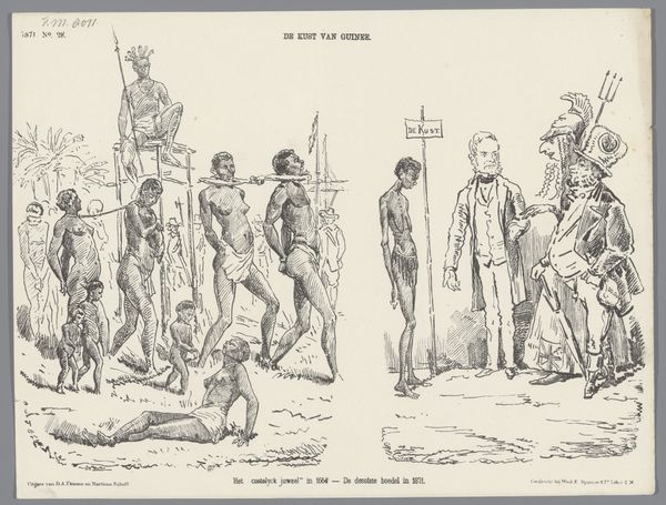 John Doyle made this print, likely a lithograph, which depicts William Smith O'Brien, an Irish nationalist, sometime in the 19th century. This image creates meaning through its caricatured figures and satirical tone, reflecting the social and political tensions of the time. Ireland was under British rule, marked by economic hardship and political discontent. Doyle's caricature comments on the failed Young Irelander Rebellion of 1848, in which O'Brien played a key role. The print questions the romantic nationalism and the institutional structures that perpetuated British authority. Was O'Brien really a martyr? Was his performance sincere or self-aggrandizing? Historians use a variety of sources such as newspapers, political pamphlets, and personal letters to understand art's social and institutional context. Such research allows us to interpret the artwork beyond its aesthetic qualities. It reveals how art engages with and reflects the complex interplay of power, identity, and social change.