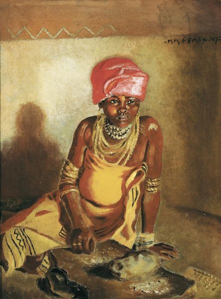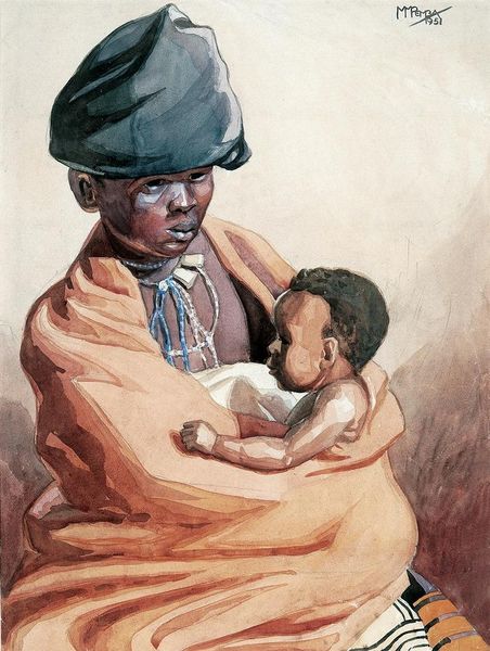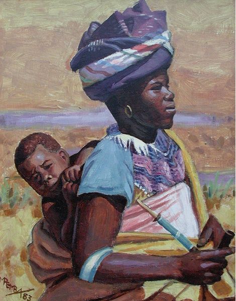 George Pemba made this drawing of a Mother with Baby in 1989, and you can see the way he used colored pencils, layering strokes to build up the figures, is a process of finding form. Look at how Pemba uses color – not to copy real life, but to create depth and shadow. The skin tones aren't just one shade, but a mix of browns, blues, and even pinks, giving the figures a sense of weight and presence. And notice the headscarf – it’s almost abstract, a collection of lines and colors that suggest form without defining it too strictly. The baby on the mothers back is rendered in a light brown, which contrasts with the other colors used in the piece. There's a rawness and immediacy to Pemba’s work that reminds me of early Picasso, where the process of making is laid bare, inviting us to participate in the act of seeing. Art isn’t about answers; it’s about the questions we ask and the conversations we have.