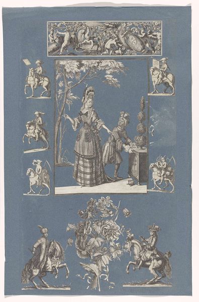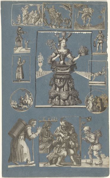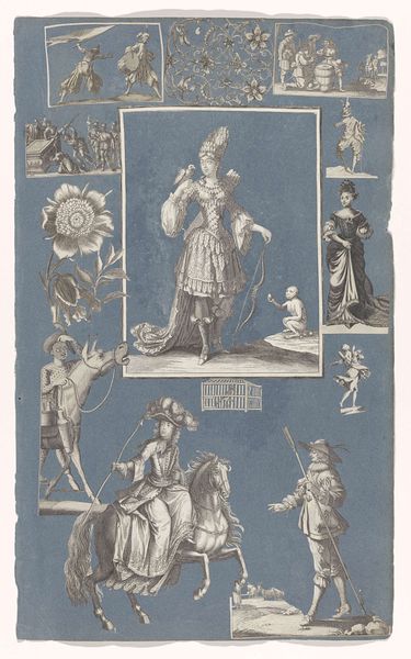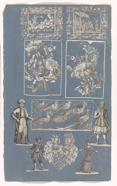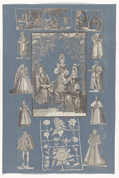 This collage of cut prints, pasted on blue paper, is a fascinating gathering of images from different makers, a cultural kaleidoscope. Note the central figure: a woman offering flowers. This gesture, seemingly simple, is rich with meaning. The offering of flowers has ancient roots, symbolizing love, respect, and goodwill. Think of Flora, the Roman goddess of springtime, her image often depicted with blooms cascading from her hands. The motif surfaces repeatedly throughout history, from Botticelli’s Primavera to countless depictions of the Virgin Mary. These resurrections reveal how deeply embedded such gestures are within our collective memory. In a psychological sense, the act of giving flowers taps into our subconscious desire for connection and harmony. Though the context shifts—religious, romantic, or social—the underlying emotional power remains potent, engaging viewers on a profound level. Like the cyclical nature of the seasons themselves, the symbolism of offering flowers continually resurfaces, evolving and adapting to new cultural landscapes.