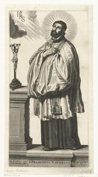 Curator: This is Diego Velázquez’s “Portrait of the Buffoon 'Redbeard', Cristobal de Castaneda,” dating from around 1640. It’s an oil painting, currently held in the Museo del Prado. What strikes you first about this work? Editor: The color! That earthy red just pops against the dark background, giving the figure an almost symbolic weight. The subject looks like some kind of royal jester. Curator: Interesting. As an exercise in purely formal terms, I find the painting brilliant in how Velázquez manipulates color temperature and texture. Notice the subtle gradations of the red, from the almost orange highlights to the deeper, shadowed folds of his robes. And the brushwork itself—so loose, almost gestural. Editor: Yes, the redness vibrates between something earthy, suggesting blood or clay, and something courtly, of heraldic color. What's going on with the cane? It’s slender like an accusing finger. Velázquez does more than represent a physical being; he seems to explore the subject's societal function. Does the scepter indicate authority mocked or authority understood in a more subtle context? Curator: The formal elements definitely support that ambiguity. The off-center composition, with the figure slightly turned away, creates a visual tension that resists easy interpretation. The layering of paint—thin washes over thicker impasto—further complicates our reading. Is this intended to challenge preconceived notions about status and identity through the symbolic implications of form? Editor: Perhaps. "Redbeard" wasn't just a face, but also an attitude—a cultural trope of irreverence. These jesters held a peculiar place within the court; they possessed the license to mock authority but also acted as truth-tellers. The choice of attire and symbolic objects seem deliberately designed to signify that complex duality. Curator: Precisely. Velázquez masterfully weaves a narrative, but he avoids a heavy hand, relying on nuance and inference within a tightly constructed visual architecture. It makes you think deeply about how power is depicted in artwork, but through more than just symbolism. Editor: It all makes for an incredibly rich visual text, doesn't it? This piece transcends portraiture, operating as a nuanced social commentary woven into a tapestry of symbols. Curator: Indeed, an exquisite balance. I leave it pondering not just who Redbeard was, but also the painter's formal articulation of personhood within its world.