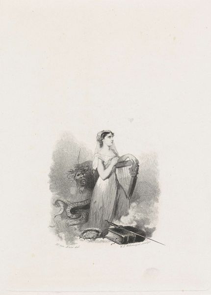 Editor: This drawing is "Vrouw zittend in de duinen" by Isaac Weissenbruch, likely created sometime between 1836 and 1912, rendered in pencil. I’m struck by the subject's pose—the way she’s seated with her chin resting on her hand. What do you see in this piece? Curator: I see a meticulous orchestration of line and form. Observe how the diagonal strokes describing the dunes contrast with the softer, rounded contours of the woman’s figure. Weissenbruch masterfully manipulates the tonal range of the pencil to create depth. Consider also the deliberate placement of the steeple in the background. What purpose does it serve? Editor: It creates a sense of place, anchoring the figure in her environment? Is it perhaps too romanticized to find deeper significance there? Curator: Perhaps, or it functions as a visual counterpoint to the figure's introspective posture. But note the stark linearity of the spire against the more organic, flowing lines elsewhere. The success of the artwork lies precisely in the tension created by such compositional choices and the subtle nuances in his application of line. It reveals an essential structural harmony. Do you see this? Editor: I do now. I was initially drawn to the subject matter and its realism. The spire offers some structure to contrast the romantic elements and makes me think about technique beyond narrative. Curator: Precisely. By understanding these visual relationships, we move beyond a simple representational reading and delve into the deeper language of art itself. Editor: This way of analyzing it shifts the focus to formal construction instead of historical context. Curator: It certainly does, enabling us to appreciate the artist’s formal decisions in crafting this quiet scene.