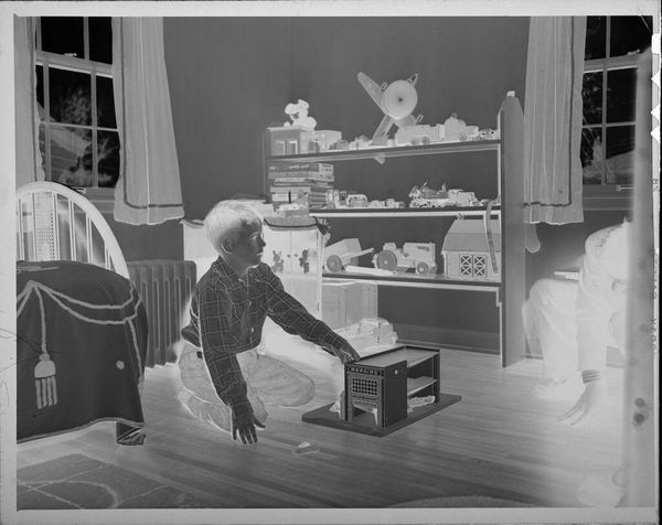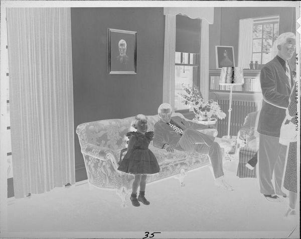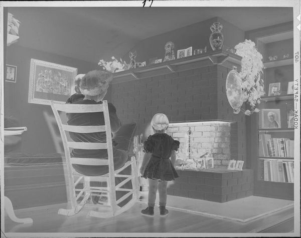 Editor: Here we see an untitled photograph, presumably by Lucian and Mary Brown, depicting a grandmother in a rocking chair with two young girls. It feels very intimate, like a stolen moment. What can you tell me about it? Curator: This image speaks volumes about domesticity and the roles of women within the family structure. The grandmother, likely a central figure, is positioned in a way that suggests both authority and nurturing. Consider how this resonates with broader societal expectations placed upon women across generations. What does the act of photographing this scene, this everyday moment, tell us? Editor: It makes me think about how photography can validate the importance of these traditionally undervalued roles. Curator: Exactly! And how might issues of race and class intersect with our understanding of this photograph, considering who is typically represented in such images and who is not? Editor: That's a perspective I hadn't considered. It certainly gives me a lot to think about. Curator: It highlights how art reflects and reinforces social narratives.