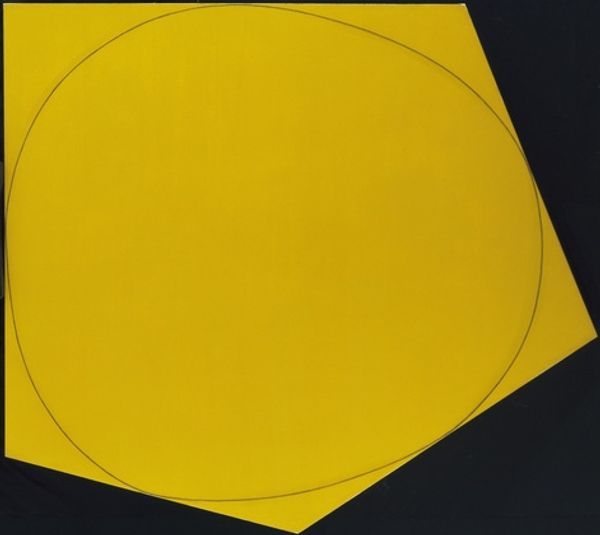 Editor: This is *Grid Forty*, an acrylic painting created by Thomas Downing in 1970. It's incredibly bright – almost a pure yellow with subtle circular forms. It reminds me of some kind of coded message. What do you see in this piece? Curator: I see a vibrant echo of the late 60s, the tail end of hard-edge painting. But those seemingly simple circles… do they remind you of anything beyond pure geometry? Perhaps pointillism, perhaps something even older? Editor: I suppose I can see a little pointillism… though those dots are much bigger. Older, maybe something celestial? Curator: Precisely. Think of astronomical charts, of constellations mapped onto a canvas. Downing simplifies, strips away the overt symbolism, yet that underlying memory of mapping the cosmos, the desire to find order… it lingers. Is there something hopeful in its simplicity? Editor: Hmm, interesting! It feels hopeful, I guess, the bright color does that. Is that why the artist may have chosen yellow? Curator: Yellow often embodies enlightenment, awareness, perhaps a sun-drenched optimism following the harsher tones of preceding eras. Yet, do you feel there is a sense of almost too much exposure? Can too much brightness fatigue or even blind us? Editor: I see your point; maybe the intensity serves as a kind of warning too. It makes me think of how repeated patterns can also be found in data and digital interfaces. Curator: Exactly. Downing's grid resonates on multiple levels, a blend of historical and modern anxieties about the systems that encompass and even define us. Editor: That really makes me rethink the piece; it’s much deeper than just a geometric abstraction.