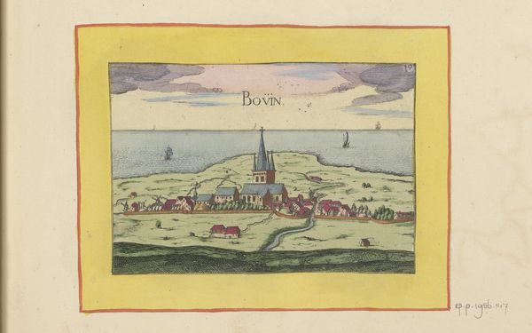 This view of La Rochelle was made by an anonymous artist with ink on paper, and demonstrates printmaking’s power as a tool for documentation and dissemination. The artist employed a combination of techniques. First, the image would have been incised into a metal plate, probably copper, with lines defining the forms of the city, landscape, and sky. Ink was then applied to the plate, carefully wiped, and then paper laid on top before being run through a press. Finally, the print was hand-colored. The result is a fascinating tension between mechanical reproduction and individualized facture. While the print medium allowed for the widespread distribution of this image, the laborious hand-coloring invested each impression with a unique quality, raising it above mere reproduction. This tension speaks to the broader relationship between craft and industry at the time, and to the value placed on skill, labor, and ultimately, the artistic touch.