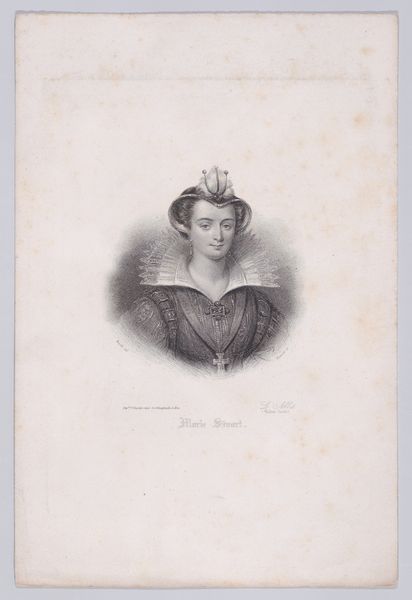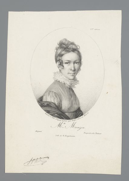 Curator: I’m drawn to this delicate engraving, “Portret van Anne Benoit,” crafted in 1818 by Jean Pierre Sudre, here in the Rijksmuseum. Editor: Wow, there's a quiet intensity there. I think it is from the framing, her face in that almost oppressive hat, the severity softening into youthful openness. Curator: It's fascinating how this portrait captures an era. The hat is particularly significant, the fashion of the day representing both status and social constraint. Do you see any layers of symbolism? Editor: Immediately. That hat, while fashionable, is like a visual barrier. I wonder, did it reflect something she wished to hide or reveal? There’s also something profoundly human about it. She's peering out. It's tentative. Curator: The very medium – engraving – is part of the cultural symbolism. Printmaking made portraits accessible. But engraving as a mode brings in the past and history, because these images will be seen over time in an easily repeatable manner. Editor: Yes! There is something almost haunted about that replication over and over through the years. How do you think our understanding changes depending on whether it's an engraving or something less replicable? Curator: This repeatability cements Anne Benoit's image in our cultural memory, transforming a single moment into an archetype of feminine representation of the era. Editor: It certainly leaves an indelible mark. I wonder, when looking at her gaze frozen across time, what did she wish we knew about her? Curator: That’s a compelling question, one this engraving encourages us to ponder. Editor: I guess the ghosts always stay with the etching and engraving processes, and remind us of this connection between art and passing time.