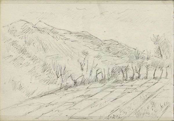 Editor: Here we have Alexander Shilling's "Duinlandschap," possibly from 1908, a landscape drawing done in pencil. There's a rawness to it, a simplicity in the marks. It feels like the artist captured a fleeting moment in time. What's your read on this? Curator: It strikes me as an interesting document of the early 20th century's engagement with nature. Think about the period: growing industrialization, urbanization… Landscapes like this became increasingly valued as escapes and as symbols of a pre-industrial past. Does the quick, almost sketchy style, enhance or diminish that sentiment, do you think? Editor: I see what you mean. The roughness emphasizes a sense of immediacy and a longing for that simpler time, perhaps. But is it truly 'real' nature, or nature filtered through a particular cultural lens? Curator: Precisely. And that's where the institutions come in. Where was this likely exhibited? What kind of audience would have seen it? Were they used to more academic, polished landscapes? This rawness you described is quite striking if placed against the backdrop of the Salon tradition, no? Editor: Absolutely. It's a push against established artistic norms. So, this simple sketch becomes part of a bigger conversation about art's role in society, its audience, and how it reflects changing values. Curator: Indeed. Shilling is using the landscape, perhaps subconsciously, to comment on a world rapidly changing. And its value now lies, at least in part, in its testimony to those shifting perceptions of the 'natural'. Editor: I never thought a simple pencil drawing could be so loaded with meaning! It makes me rethink what I considered just a simple sketch. Curator: Art is rarely 'just' anything. Our job is to peel back those layers, examine the contexts, and understand the dialogues they're participating in.