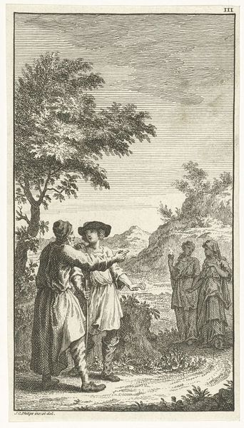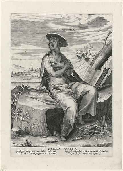 Curator: Charles Boily's engraving, "De Oranjeboom behoedt de kunst," which roughly translates to "The Orange Tree Protects the Arts," likely created sometime between 1753 and 1813, presents an allegorical scene rendered with meticulous detail. Editor: The mood, for me, feels deliberately optimistic, wouldn’t you agree? Despite being a print, a medium known for its reproducibility, there’s an airy, almost fragile quality. Curator: Indeed. Note the Neoclassical elements – the idealized figure, the draping fabrics. We have a symbolic tableau where each component serves a distinct purpose within the larger narrative framework. Editor: It reminds me of those old theatre backdrops; grand gestures hinting at something bigger. The way the woman holds that mask seems laden with meanings; I can almost feel her anxieties regarding how the artwork will be received. Curator: I see your point about performativity, though perhaps you’re verging into speculation! From a structural standpoint, the central female figure stands confidently, directing our gaze towards both the tools of art and, crucially, the protective orange tree, which probably stands for the House of Orange, alluding to patronage and safeguarding. Editor: Well, isn’t that the point of art? To conjure up narratives? I appreciate how it suggests creativity thrives only with protection and endorsement from political establishment, symbolized here by the orange tree motif – which might also reflect an insecurity regarding sustainability. The cupid-like figure writing below confirms this idea of patronage, as well. Curator: Perhaps, yet the clear, crisp lines of the engraving, almost architectural in their precision, counteract such emotive subjectivity. It signifies a desire for rational order during turbulent times of artistic evolution. Boily manages this through deployment of line and the construction of figurative elements. Editor: Sure, but art also lives outside rigid theory; maybe Boily hid personal reflections inside those precise engravings. In a way it is all rather humorous how an artwork created ages ago can provoke such reflections to begin with. Curator: Well said. Considering the historical setting in mind, “De Oranjeboom behoedt de kunst” succeeds in allegorically representing the dependency of the arts on powerful protectors with remarkable economy of line. Editor: Absolutely. What begins as simple appreciation of imagery spirals into something richer – it turns into, ironically, safeguarding not just arts but thought itself.