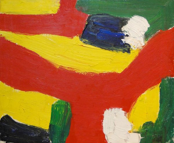 Editor: So, here we have an *Untitled* piece from 1954 by Guido Molinari. Looking at the acrylic on canvas, it strikes me as almost aggressively textured. A riot of colors seemingly thrown together. What do you make of it? Curator: "Aggressively textured"—I love that. It's true, isn't it? Molinari’s impasto practically leaps off the canvas. Think of the raw energy, the sheer audacity of it! He's not just applying paint; he's wrestling with it, shaping it. And the color! It’s a Fauvist dream… or maybe a Fauvist nightmare, depending on your mood. Do you see any hints of underlying structure amidst the chaos? Editor: Hmm, maybe… Are you thinking about how the blocks seem to gather and disperse again? I wasn’t sure if I was imagining that! Curator: No, no, you’re spot on! Guido builds a rhythm, a sort of push-and-pull that prevents it from devolving into utter mayhem. He hints at structure, then gleefully subverts it. Think of it like jazz – a framework of chords constantly threatening to dissolve into improvisation. What feelings arise when you imagine how he painted this piece? Editor: I feel like he was trying to represent his subconscious. Did abstract expressionists share a similar state of mind? Curator: Absolutely, there's an immediacy, an urgency to capture raw emotion on canvas. Each color choice becomes a visceral expression of that era's spirit, a society undergoing dramatic changes after a devastating war. What is great is the refusal of closure, which also reflects this societal transformation. Editor: I’m struck by the connection you draw between the physical application of paint and that kind of freedom of thought. Thank you for sharing your ideas with me. Curator: Likewise. Every new interpretation illuminates some new aspect. The joy is that, with a work like this, there’s no final answer.