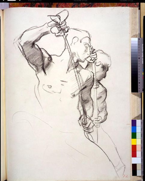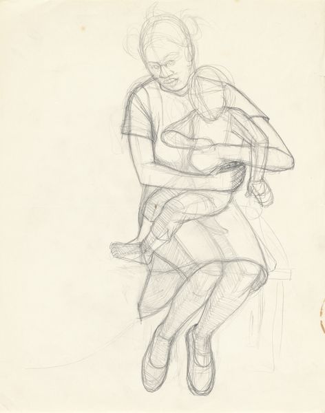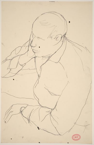 Curator: Sedrick Huckaby’s lithograph, “99% NO.17 Julitte Spars,” presents a seated figure, sparely rendered. The title hints at a story, perhaps a personal one. What strikes you first? Editor: It’s the figure’s direct gaze. There’s an undeniable vulnerability in the sitter’s posture, yet the sharp lines of the sketch communicate strength. Curator: The sketch-like quality evokes an immediacy, as if capturing a fleeting moment, yet the tattoo hints at permanent stories etched onto the body. Editor: Right. And the composition, with its truncated limbs and loosely defined setting, underscores the ephemerality of lived experience. It's both raw and refined. Curator: Indeed. The incompleteness allows viewers to project their own interpretations, contributing to a collective memory. Editor: An interesting tension, reflecting both the singularity of individual existence and our shared human condition. Curator: A subtle yet powerful work, then, that continues to resonate. Editor: Exactly. The artist's keen eye allows us to reflect on the power of line and form.