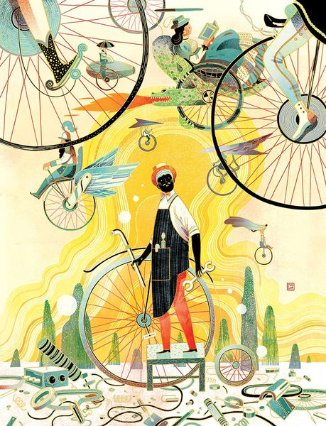 Editor: This is Volodymyr Loboda's "Girl riding a Bicycle" from 1971, an oil painting with a somewhat naive style. I’m struck by the simplified forms and bright colors. It feels both playful and strangely formal. How would you interpret this work? Curator: It's fascinating to consider this piece within the context of Soviet Nonconformist Art. While the subject seems innocuous – a girl on a bicycle – its very existence outside the strictures of Socialist Realism is significant. The flatness, the almost crude rendering…what might these stylistic choices communicate in a society that valued idealized representation? Editor: So, the "ordinariness" of the subject, a simple scene of a girl riding her bike, becomes almost a rebellious act by not adhering to the officially sanctioned style? Curator: Exactly. It challenges the expectation of art serving a clear propagandistic purpose. Consider also the social implications of the bicycle itself. Was it readily available? Who had access? The artist makes a statement, whether deliberate or not, by depicting this particular subject, inviting viewers to see beyond the officially promoted narratives. Who does she represent, the artist seems to ask. What type of social order? Editor: That adds a whole new layer to it. It’s not just a painting of a girl; it's a subtle act of defiance. What do you make of the landscape then, is it an ideal, an ironic representation, or perhaps a fantasy? Curator: A loaded question! Does it represent a nostalgia, a hope for personal freedom, or a statement about sanctioned landscapes in academic art? Its existence testifies to artistic survival in restrictive societies, adding importance to its market. This single, small act helps others in years to come. Editor: Wow, I didn't realize there was so much depth to what I initially thought was just a simple painting. Thank you, that really opened my eyes. Curator: And it makes us question how art acquires its importance.