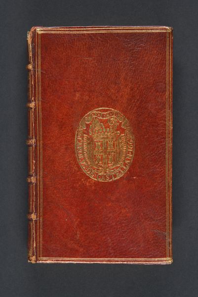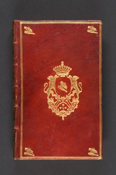 Editor: Here we have a gilded book binding created by Padeloup around 1740, entitled "Proposition concernant le payement et la police des troupes du roy...". It’s beautiful, so intricate! I am immediately struck by how opulent it seems. How would you interpret this work, considering its historical context? Curator: Well, consider this object within the broader framework of court culture. What does such an elaborately decorated binding *do*? It certainly elevates the text itself, regardless of its content, and projects power, doesn’t it? We might also ask ourselves, who was meant to see this? A binding like this signals that its contents were intended for someone of importance, someone close to the court, or perhaps even the king himself. Editor: So it's less about the content, and more about the status symbol? Curator: Exactly! The book becomes a vehicle for projecting power and wealth. These types of bindings acted as material demonstrations of patronage. It communicated that the owner or the giver of the book was someone of means and influence. Did you notice the coat of arms in the central oval? That is key for understanding the role of visual imagery in establishing authority and communicating social standing. Who would have paid for the production of this object, and what were they hoping to gain? Editor: I see, the opulence is a language itself! Now I’m wondering about the economics surrounding these commissions and how the artist may have operated in those circles. Thanks for your perspective. Curator: And for me it underscores how something as simple as a book binding can reveal the intricate relationship between art, power, and the public sphere.