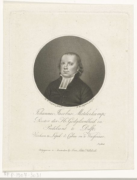 Jan Willem Caspari created this print of Paulus van der Ven using etching and engraving techniques. Note the subject’s attire, dominated by the stark white bands at the neck. These bands, a visual marker of clerical status, signify a break from the everyday and a devotion to higher spiritual duties. This motif echoes through art history, from the simple robes of early Christian ascetics to the elaborate vestments of medieval clergy. Consider how such symbols evolve; the white bands, in their simplicity, speak of purity and directness, yet also of the authority vested in the wearer. Think of similar symbols, a judge's gavel, a king’s crown, all carrying the weight of tradition and power. Such vestments tap into our collective memory, triggering responses both conscious and subconscious, and reminding us of humanity's long relationship with symbols of authority. These garments aren't merely clothing, they are powerful visual cues that engage viewers at a profound emotional level. This image shows how symbols constantly resurface, evolving and taking on new meanings across time.