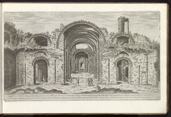 Editor: This engraving, "Foreground Female Figures with Background Ruins" by Denis-Pierre-Jean Papillon de la Ferté, features a classical scene rendered with very fine lines. It evokes a sense of melancholic beauty. What historical symbols or meanings do you find most striking? Curator: The ruins themselves are powerfully symbolic. They represent the impermanence of human achievement and the inevitable passage of time. Notice how nature reclaims the architecture; a poignant reminder of civilization's fragility. What feelings does that contrast evoke in you? Editor: The romantic notion of decay mixed with human resilience is pretty strong here. It makes me think about cultural memory and how we preserve our history. Curator: Precisely. The figures almost seem to be dwarfed by the setting, suggesting the overwhelming power of history and the enduring presence of the past. These symbols provide a way to connect the present to cultural memory. Editor: I never thought of it quite like that, but I agree. It seems that there is a lesson about the relationship between humans and time. Curator: Indeed. These symbols remind us of cultural continuity.