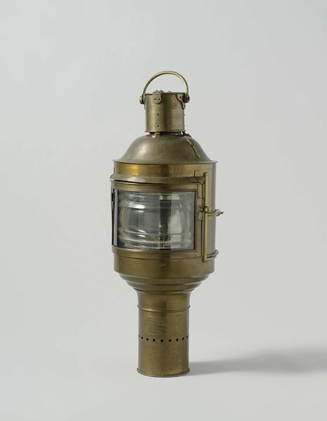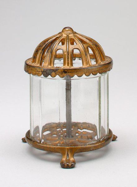 Curator: So, here we have a presentation lantern, made by Kelly & Co. sometime in the 19th century. It resides here at the Minneapolis Institute of Art and consists of bronze, metal and glass. Editor: Wow, there's something immediately melancholic about it. All that lovely glass and metal – it's like a hopeful beacon trapped in a cage of functionality. Curator: Functionality that spoke volumes at the time, really. Consider the sociopolitical implications: this object illuminates not just physical space but the very idea of progress. The lantern signifies industry and technological advancement. Editor: See, I skipped right over all that. I mean, sure, now that you mention it. But first glance? Just the romantic glow of bygone nights, y’know? Imagining where it hung. Did it light someone safely home, or maybe just illuminate some fancy house number? Curator: Both possibilities, I suppose. But thinking about safety leads me to consider labor. Where was it used, by whom, and under what conditions? The decorative art label obscures deeper historical inequities, doesn't it? Who benefited, and whose labor fueled its creation and usage? Editor: Okay, now I'm picturing factory smoke and long nights! It does shift things, seeing it that way. Still pretty, though, that glasswork inside the globe is whispering secrets, I'm telling you. It's more than just functionality, there's an element of preciousness too, some level of care for the design in those tiny decorations. Curator: A care built, no doubt, on systemic economic exploitation. But this intersection of beauty and function makes it powerfully representative of the complex 19th-century cultural landscape of the United States. Editor: Well, whatever its origin, staring into this lantern feels like gazing at history in miniature. Tiny window of both dreams and tough truths. Curator: Absolutely. And considering those complex, and often difficult to look at, origins is why these objects continue to matter today. Editor: I'll sleep a little less soundly tonight, but, like you said, still very glad I stopped to consider that pretty glow.