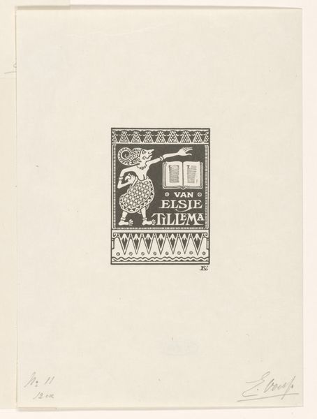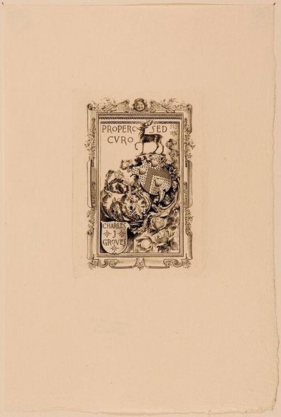 Curator: This is Sidney L. Smith's bookplate, designed for W. H. Chase. It's a lovely example of the art of the bookplate. Editor: It feels so intimate, like a tiny stage set for a private drama of the mind. The book, of course, the anchor. What does it mean? Curator: Well, bookplates were a mark of ownership, and status, for book collectors, meant to reflect something of the owner's interests. Editor: The anchor suggests a connection to the sea, perhaps. There is a contemplative feel. The motto in the book reads: "Companion of my Solitude." Curator: Exactly. Bookplates provided a way for individuals to express themselves through carefully selected imagery, even within the seemingly rigid social conventions of the time. Editor: A small window into the soul, hidden inside the cover of a book. It’s amazing how much personality can be conveyed in such a tiny space. Curator: These objects show us how art could be deeply embedded in everyday life, shaping personal identity and social circles. Editor: It's making me want to design my own bookplate, but what symbol could encapsulate my whole self?
