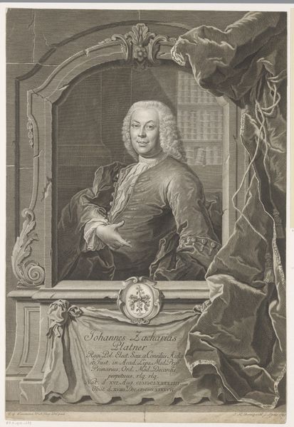 Johann Wilhelm Windter made this print of Michael Christoph Engelland, a man of apparent status, during the 18th century, a period defined by rigid social hierarchies. Engelland is depicted with symbols of wealth and intellect, his posture and attire reflecting the conventions of aristocratic portraiture. Yet, the trappings of status can also be viewed as performative. How did Engelland experience the constraints and expectations of his social position? How does the artist both uphold and perhaps subtly question these social norms through his rendering? Consider the emotional landscape of such representation, the tension between public image and private self. Does this image invite us to reflect on the ways individuals negotiate identity within the structures of their time? Posing these questions allows us to unpack the complex interplay between identity, social expectation, and artistic expression.