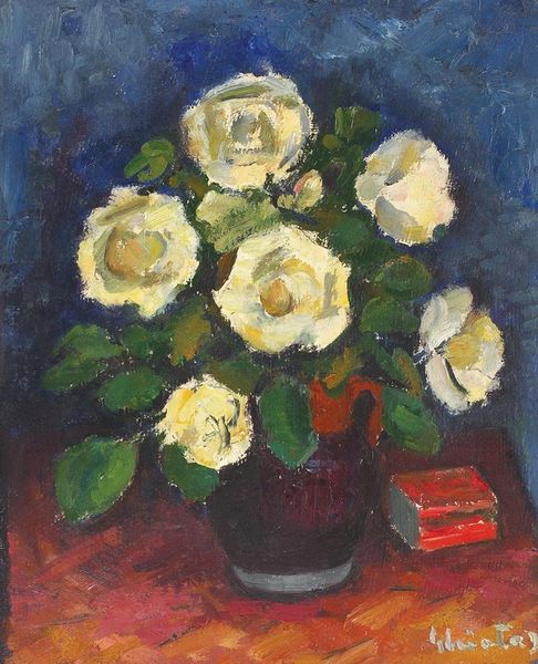 Pyotr Konchalovsky made this painting, Roses in a Jug, with oil on canvas. You know, sometimes it's just about capturing a moment, right? The way the light hits, the colors sing, the process of doing. Look at how Konchalovsky builds up this bouquet of roses in a glass jug with these chunky strokes, like he's wrestling with the paint, trying to pin down the fleeting beauty of these flowers. The greens are deep and juicy, the reds are smoldering, the whites are luminous. It's all so tactile, so alive. And that jug! It's like a dark, shimmering pool reflecting the light, holding the whole composition together. I am also reminded of Cezanne and his still lives, that searching for form and structure while letting the colors vibrate and sing. Art is never made in a bubble, it’s always in conversation. What do you think these flowers are saying to each other?