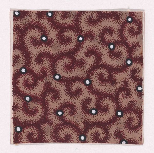 This small sheet with an overall pattern of dots in triangular shapes was made by an anonymous artist, using ink on paper. The seemingly simple arrangement of dots, when viewed through a socio-historical lens, reveals intriguing connections to broader cultural practices. The paper's origin and intended purpose remain a mystery, yet the ordered repetition of the pattern speaks to the human impulse for organization and adornment. One cannot help but wonder if it was intended as a textile design, or perhaps, a practice sheet for an artisan honing their skills. What do we know about workshops in the country and time it was made? Was this the product of a master or a student? Studying objects like this one involves piecing together fragments of information from surviving documents, material culture, and comparative examples to build a fuller picture of the artistic, economic, and social context in which it was created. This object reminds us that every work of art, no matter how humble, is a product of its time and place, shaped by the institutions and cultural practices of its society.