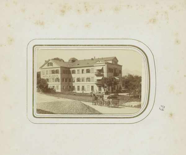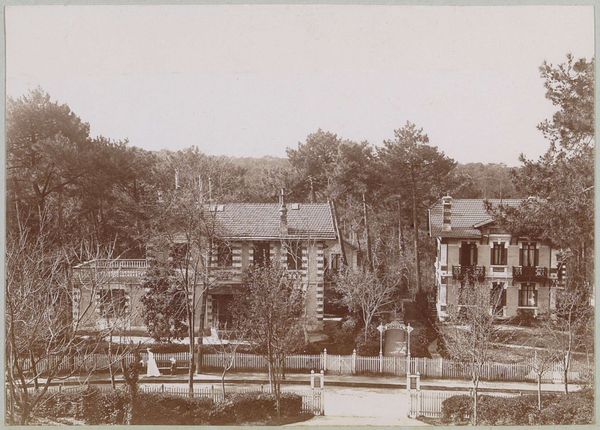 Editor: This is an interesting photograph. It’s titled “Gezicht op het heiligdom van Loyola,” and was created in 1904 using the gelatin silver print process. What strikes me is how imposing the architecture is within the landscape. What stands out to you in this image? Curator: It's precisely that imposing presence that intrigues me. Loyola, the birthplace of Ignatius, became a site laden with complex historical implications. This photograph, created at a time when religious institutions faced scrutiny amidst rising secularism, presents a carefully constructed image of power and authority. How does the formal composition – the placement of the sanctuary in relation to the 'common' land – speak to the church’s role in shaping social and political landscapes? Editor: So, you’re suggesting that the way the building dominates the landscape isn’t just aesthetic, but also speaks to the church’s influence? Curator: Exactly. Consider the medium itself. Photography, at the turn of the century, was both an art form and a tool for documentation and control. By using photography to represent the sanctuary, the artist arguably engages with questions of representation, power, and truth. Does this photograph subtly reinforce or perhaps challenge dominant narratives about the church’s position in society? Editor: I hadn’t thought of it that way. The photograph initially felt like a simple landscape, but you’re right, it is way more complex. Thanks for providing that socio-historical background, I see this work with a fresh perspective. Curator: It's a testament to how deeply intertwined art is with its socio-political environment, wouldn't you agree?