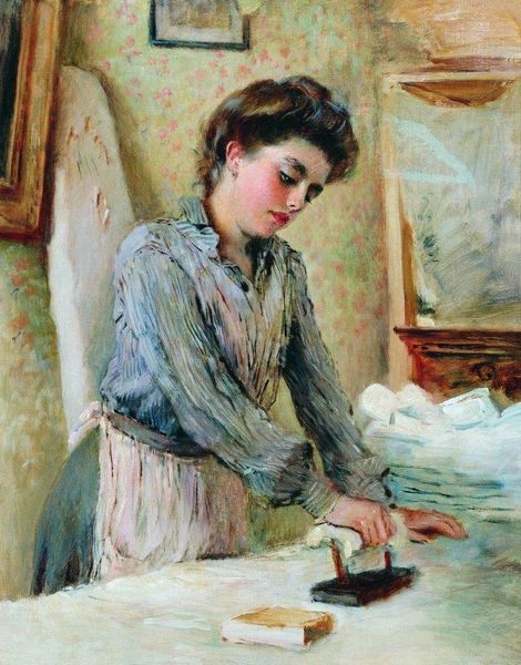 Konstantin Egorovich Makovsky painted this watercolor, Head of the Girl in a Kerchief. The watercolor medium, traditionally used for studies and preliminary sketches, allows for a swift, spontaneous rendering, ideal for capturing fleeting moments of everyday life. Notice how the translucent washes of color evoke the girl’s youthfulness, and how the basket is summarily described. The rapid, fluid brushwork shows the artist’s mastery of the medium, as well as the sitter’s humble station. Makovsky was known for his grand society portraits, but here he turns his attention to the working class, perhaps seeking authenticity in a rapidly changing society. While seemingly spontaneous, the painting also reflects the artist’s skilled hand and trained eye. It prompts us to consider how artistic practices are often intertwined with social observations, reflecting the artist’s engagement with the world around them.